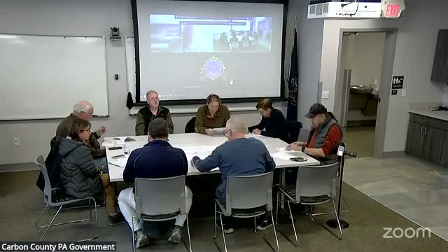 County staff told commissioners that a records search returned no county permits or inspection records for the Panther Creek energy facility, advised requesters to contact site operators and state agencies, and also reported no county records for an asbestos removal site and a zoning-height notification from Penn Forest Township.