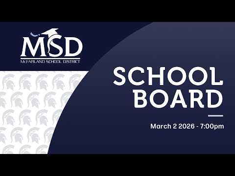 A McFarland High student presenter detailed Community Week activities, club events, DECA competition results, performing‑arts trips and a cereal‑box fundraiser currently led by juniors, and answered board questions about donation accounting.