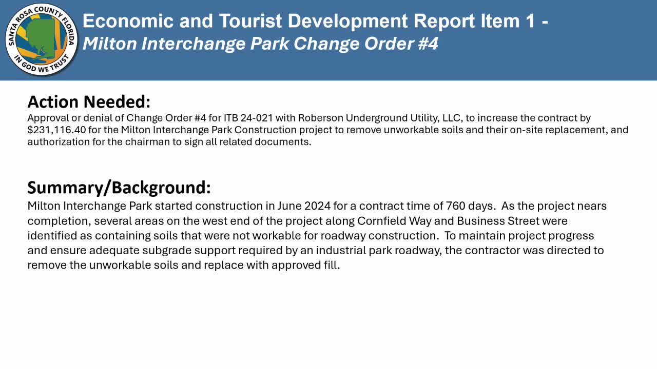 County staff recommended and the board agreed to initiate formal negotiations with NAS Whiting Field on a proposed outlying-field land-leveraging effort; Navy representatives said any agreement would be vetted through a multiyear federal approval process and could include land-exchange options to protect training missions.