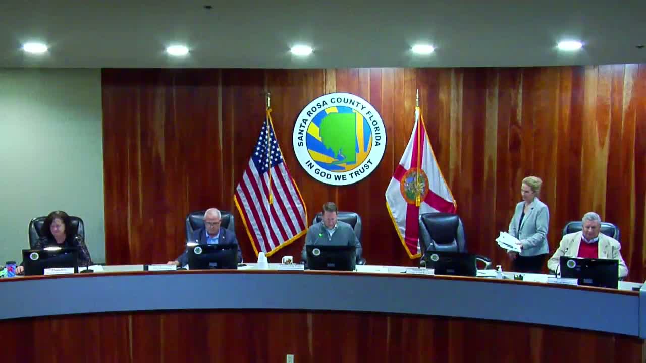 Council deliberation and public comments: Several council members expressed concern about well-field proximity and wetland impacts near proposed spray-field sites; Milton staff and county staff said DEP evaluated the permit and deemed the selected property appropriate under current rules. One council member urged the city to pursue reuse customers to reduce reliance on land application; Milton staff said reuse is a stated priority after the immediate effluent removal step.