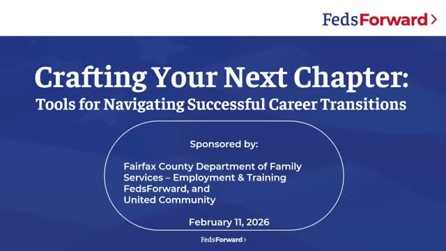 Feds Forward led a virtual workshop with Fairfax County and Civic Match advising federal employees and contractors to 'translate' federal experience into market-facing outcomes and 'integrate' by learning how target sectors work; an employer panel emphasized aligning candidate and employer priorities ('you plus me equals us').