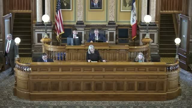 The Iowa House introduced House File 2728, described as an act addressing obstruction of first responders and penalties; the chamber later recessed after a voice vote on a motion to adjourn for party caucuses.