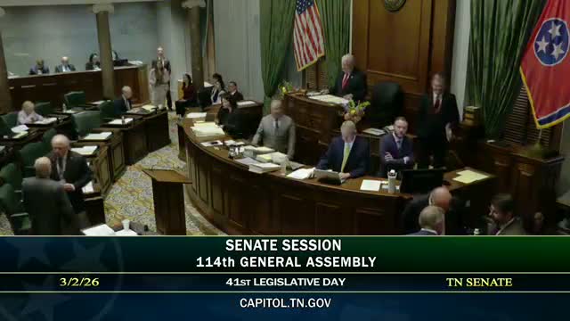 The Tennessee Senate met in floor session on March 2 and approved a large calendar of bills, adopting many measures on third and final consideration and laying others over for future calendars.
