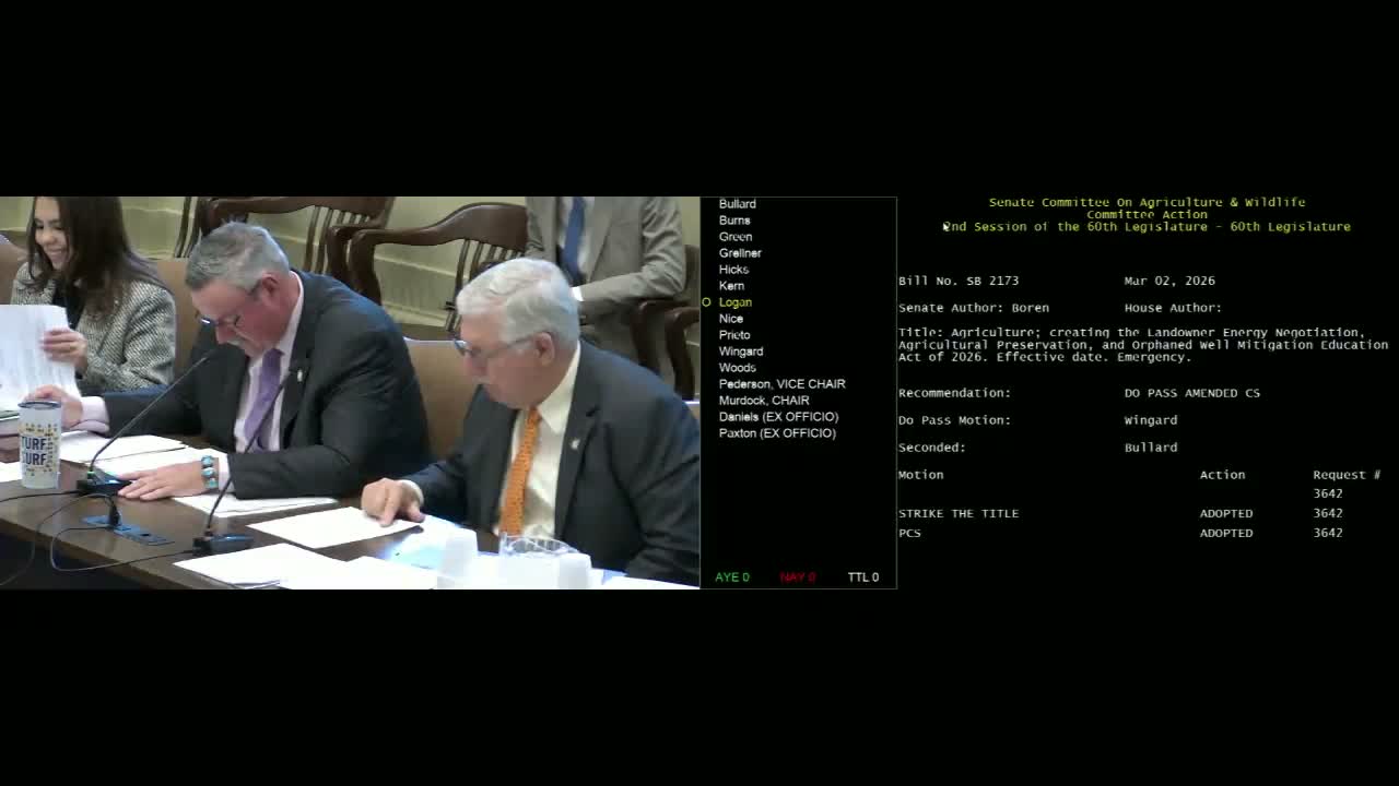 Oklahoma State Senate committee (agriculture/food/energy matters) · March 2, 2026