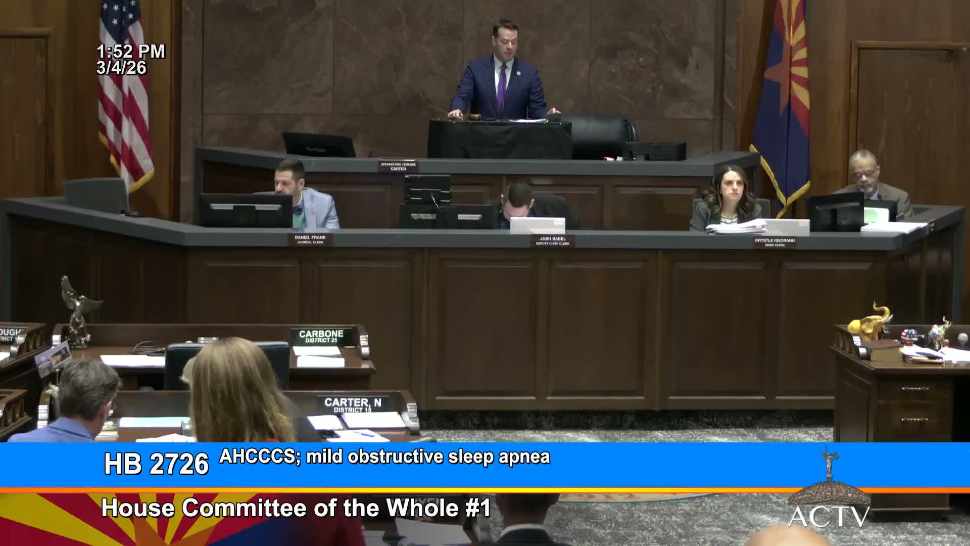 HB27-26 would add an FDA-approved device for mild sleep apnea to Arizona's access list. Sponsor Representative Bliss said other states approved similar measures; critics urged the item go through the formal Access/formulary process and flagged vendor-support and potential costs (device cited at $1,600).