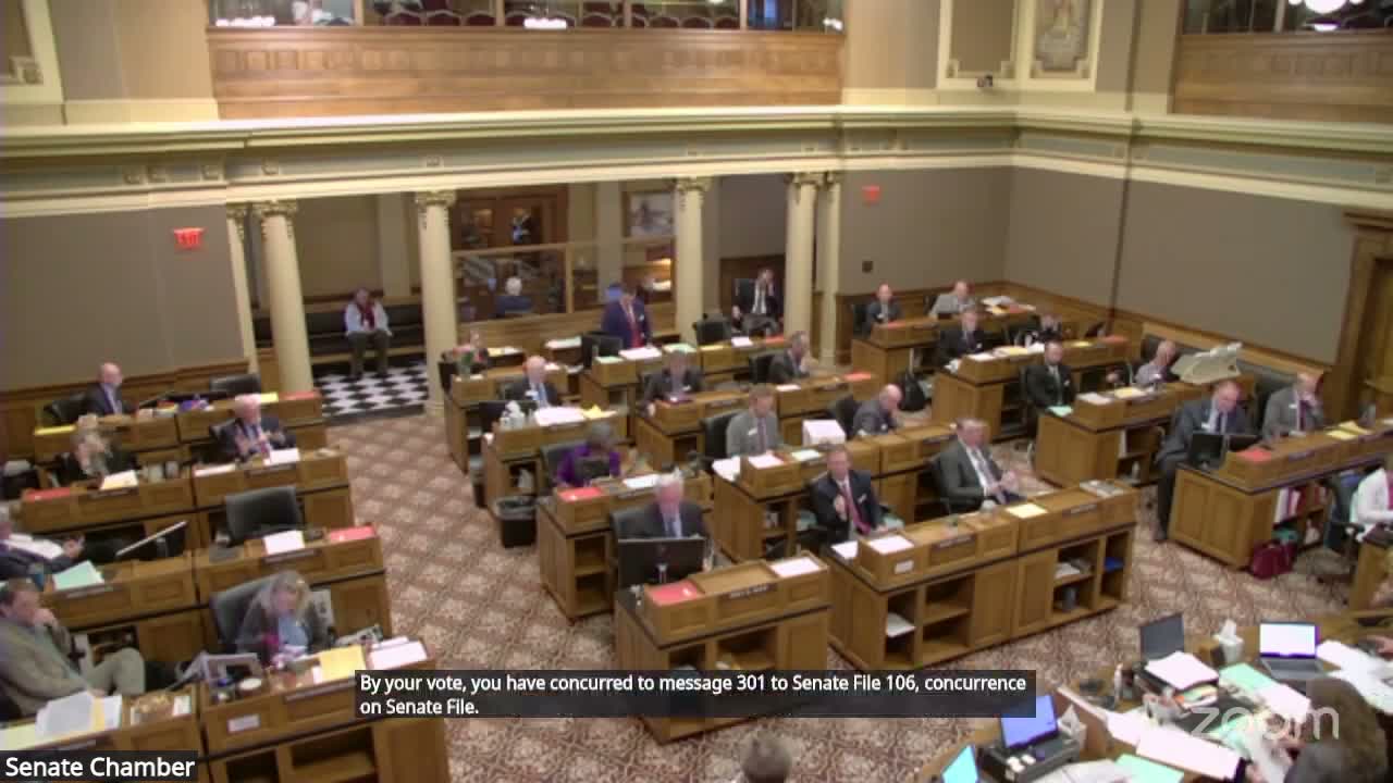 Floor managers said they could live with the amendments despite reservations and urged an aye vote. By concurrence the measure proceeds to the enrolled-act process; the transcript records a floor manager’s assurance that the next legislature could revisit the funding structure in the future.