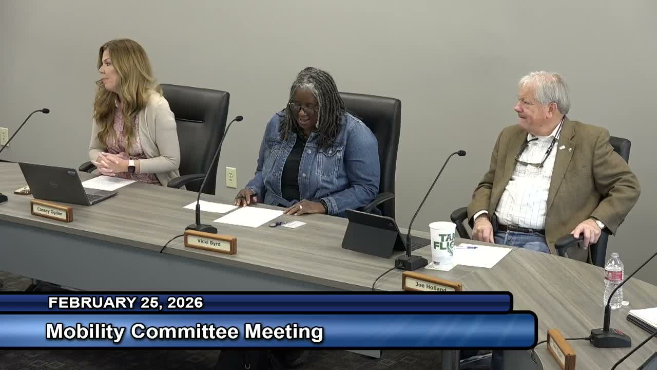 NCTCOG’s Transit 2 regional planning framework was presented to Denton’s Mobility Committee; staff proposed a Denton‑specific Transit 2 synthesis study, potential $2–2.5 million federal grant applications, and short‑term implementation 'low‑hanging' projects in coordination with DCTA.