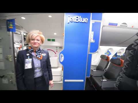 Airport officials and event presenters announced new JetBlue service to Walton Beach at a short program at Destin-Fort Walton Beach Airport (VPS). Moderator (S1) opened the event and thanked JetBlue, saying, "We're excited." S1 also introduced the new routing, identifying flight number 2011 as destined for Walton Beach.