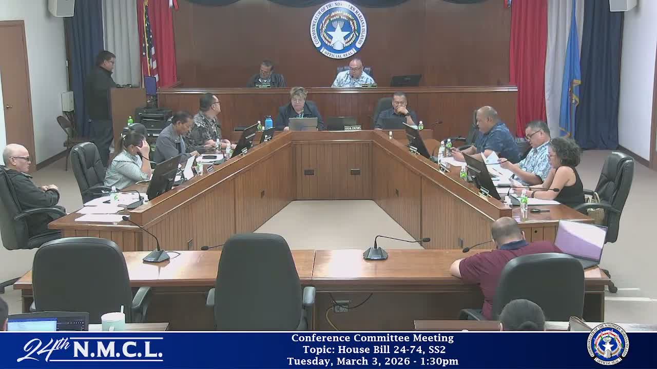 The Senate conference committee approved ground rules for House Bill 24-74 SS2 and opened deliberations on using trust interest income to address shortfalls caused by a federal pause in assistance; Representative John Paul P. Sablan urged diverting $750,000 to the Marianas Visitors Authority to stabilize air service and support tourism jobs.