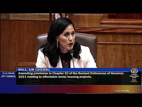 The Honolulu City Council Committee on Housing, Homelessness and Parks on March 3 advanced an amended draft of Bill 18, which seeks changes to Chapter 32 (the Bill 7 affordable rental housing program), and deferred final action pending analysis from UHERO and data from the Department of Planning and Permitting (DPP).