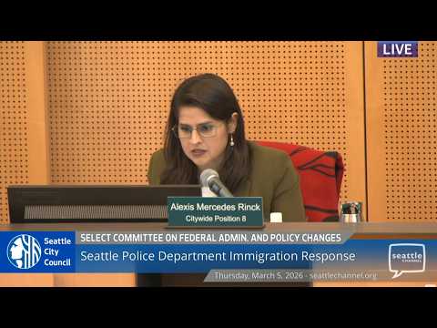 Seattle Police Chief Barnes and department leaders briefed the select committee March 5 on a directive clarifying officer response to federal immigration activity and on steps to convert that directive into a permanent policy.