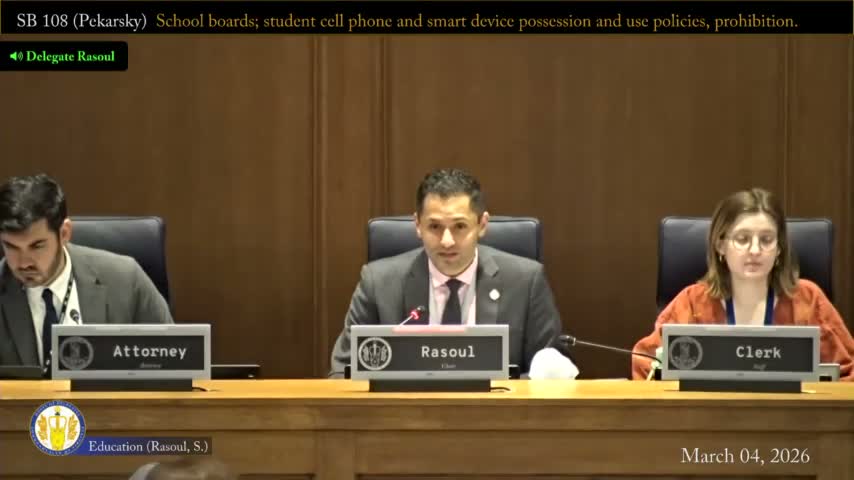 The House Committee on Education voted 18–1 to report Senate Bill 108 with substitute, a measure by Sen. Pekarski to prohibit student phone use during the school day; proponents cited reduced bullying and improved focus, while members raised enforcement and local-control concerns.