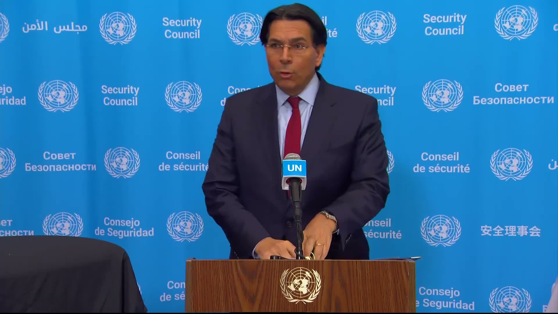 Danny Danon, Israel—s ambassador to the United Nations, told reporters that Iran has fired missiles and drones across the region "indiscriminately," citing claimed totals and warning that some drones can carry more than 100 pounds of explosives. He said Israel and the U.S. are targeting military infrastructure and urged patience as operations continue.