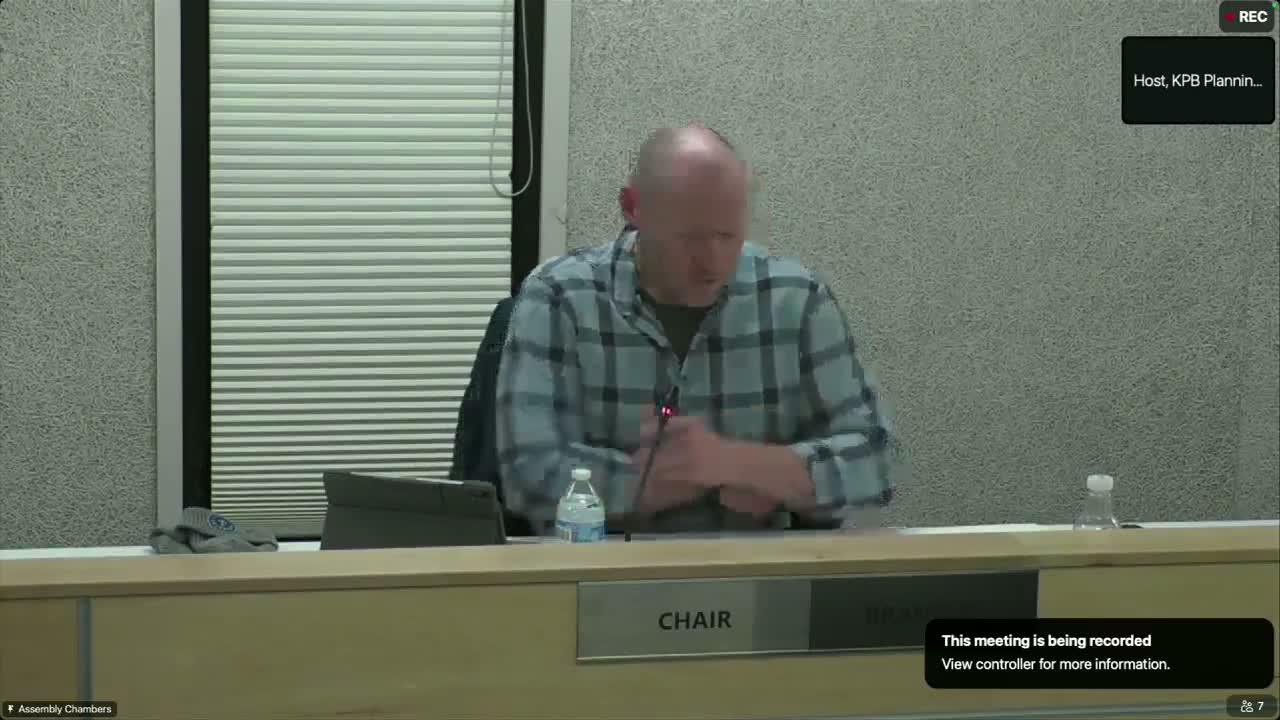 The Kenai Peninsula Borough Planning Commission on Feb. 23 approved a conditional use permit allowing bank stabilization work, replacement of elevated light-penetrating platforms, revegetation and installation of a wooden-slat protective fence within the 50-foot Kenai River habitat protection setback at the River Center property (514 Funny River Road). Morgan Aldridge, a planner with the River Center, told the commission the work responds to increasing foot traffic that has removed vegetation and destroyed earlier stabilization efforts and that the project meets borough standards.