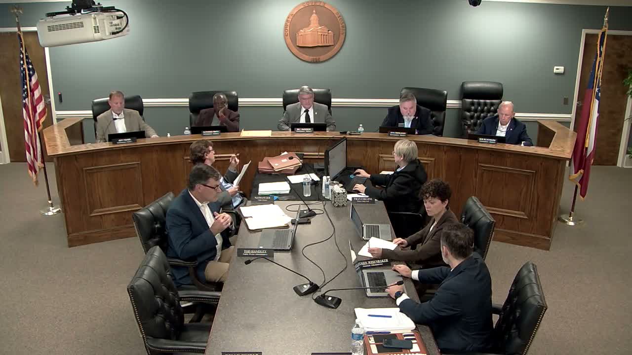 The Coweta County Board of Commissioners on March 3 approved variance vAR25-22 for a proposed Yamaha Motor Manufacturing/DHL supply facility in Newnan, allowing reduced exterior 'Category A' materials with seven conditions including 800 screening trees, a 50-foot undisturbed buffer and a restriction that the warehouse be used only for goods and materials used by Yamaha in its adjacent plant.