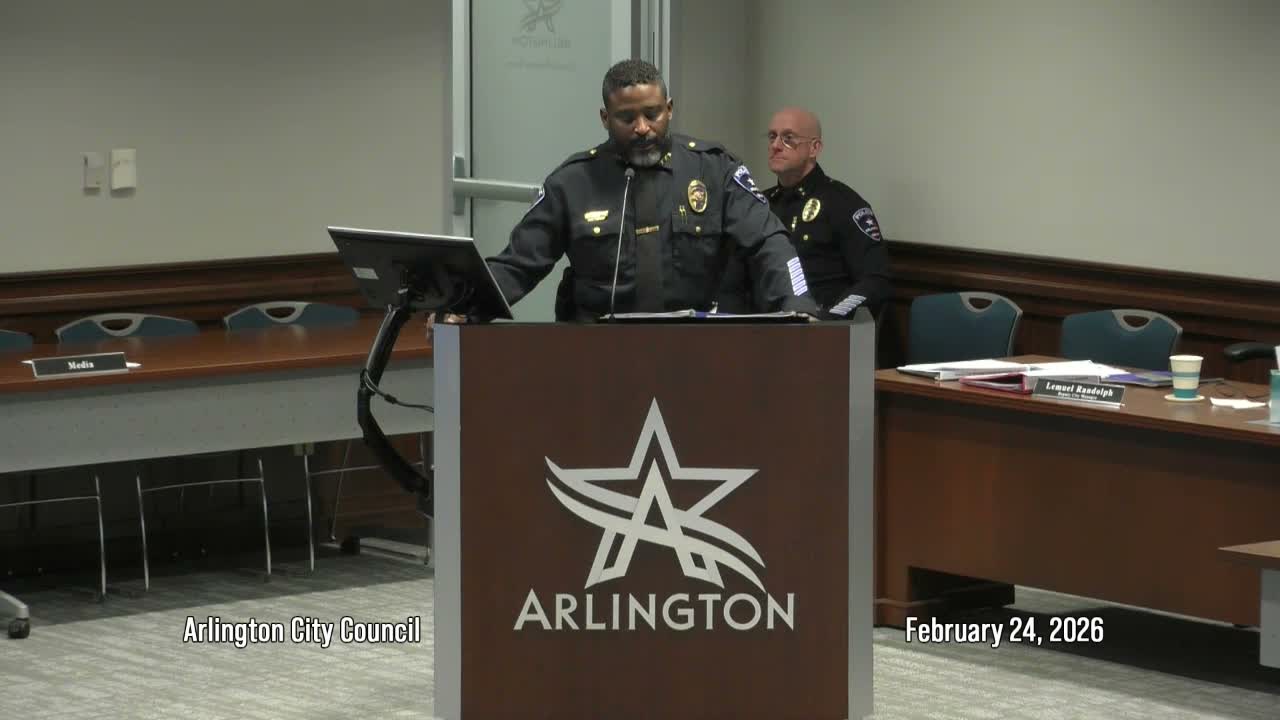 Assistant Chief Leland Strickland presented the Arlington Police Department's 2025 racial-profiling analysis to the City Council on Feb. 24, saying the department conducted over 103,000 traffic stops last year and received 11 allegations of racial profiling, all of which were investigated by Internal Affairs and recorded as unsustained.