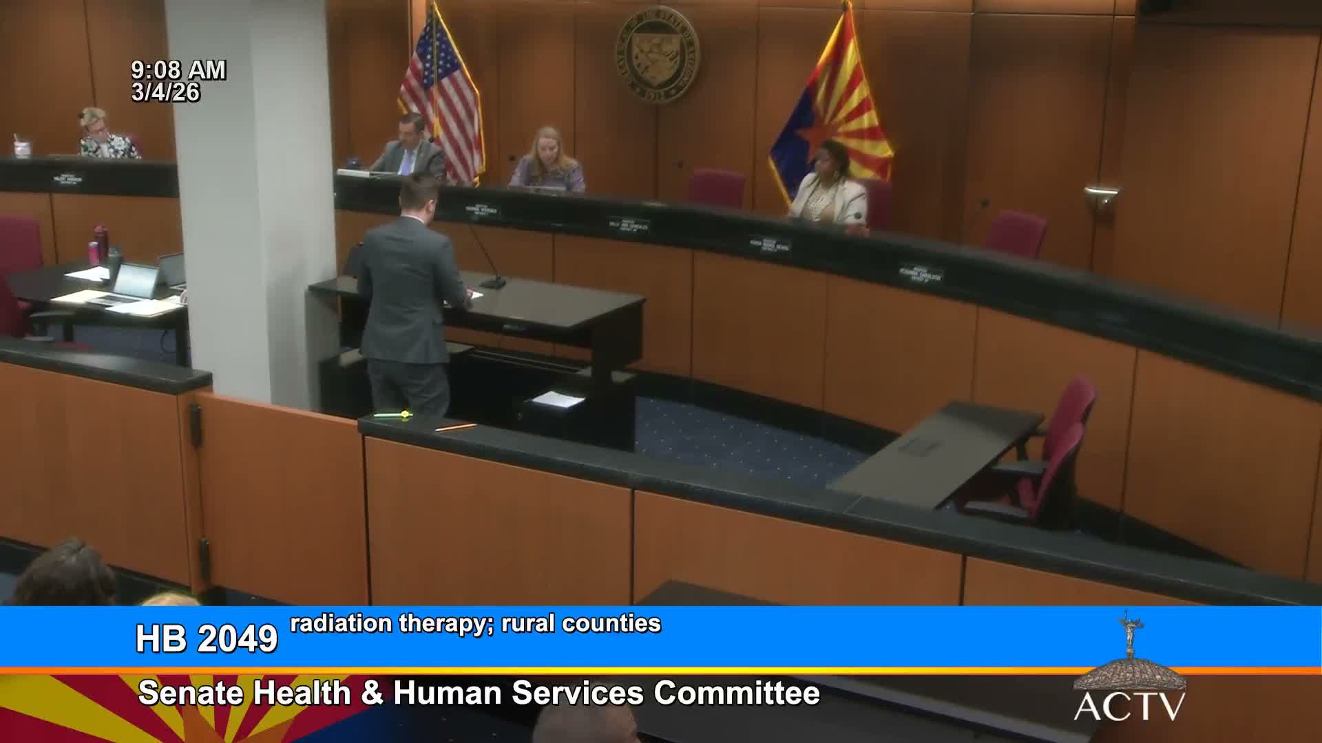 The House Health and Human Services Committee on Feb. 19 voted to advance House Bill 2049, which would allow the Department of Health Services to permit particle-accelerator radiation therapy under general supervision in counties with fewer than 400,000 residents and at critical-access hospitals if safety and documentation requirements are met.