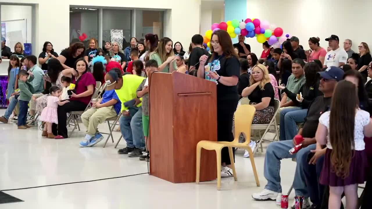 Assistant Principal Viola Ramos introduced the Riverside Pre-K teaching teams and support staff by name and thanked the contractors and architects who built the new facility. "Please know you guys that you will always have a home here at Riverside Pre-K," Ramos said, thanking ESA Construction and AKS Architecture and district staff who supported the project.