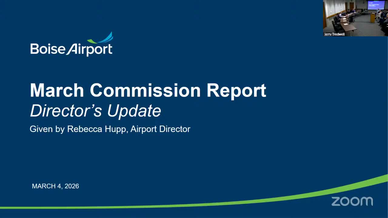 Boise Airport Director Rebecca told the commission on March 4 that the airport is preparing major capital work and operational changes, including a runway reconstruction project, Concourse A apron work, and other near-term construction and equipment upgrades.