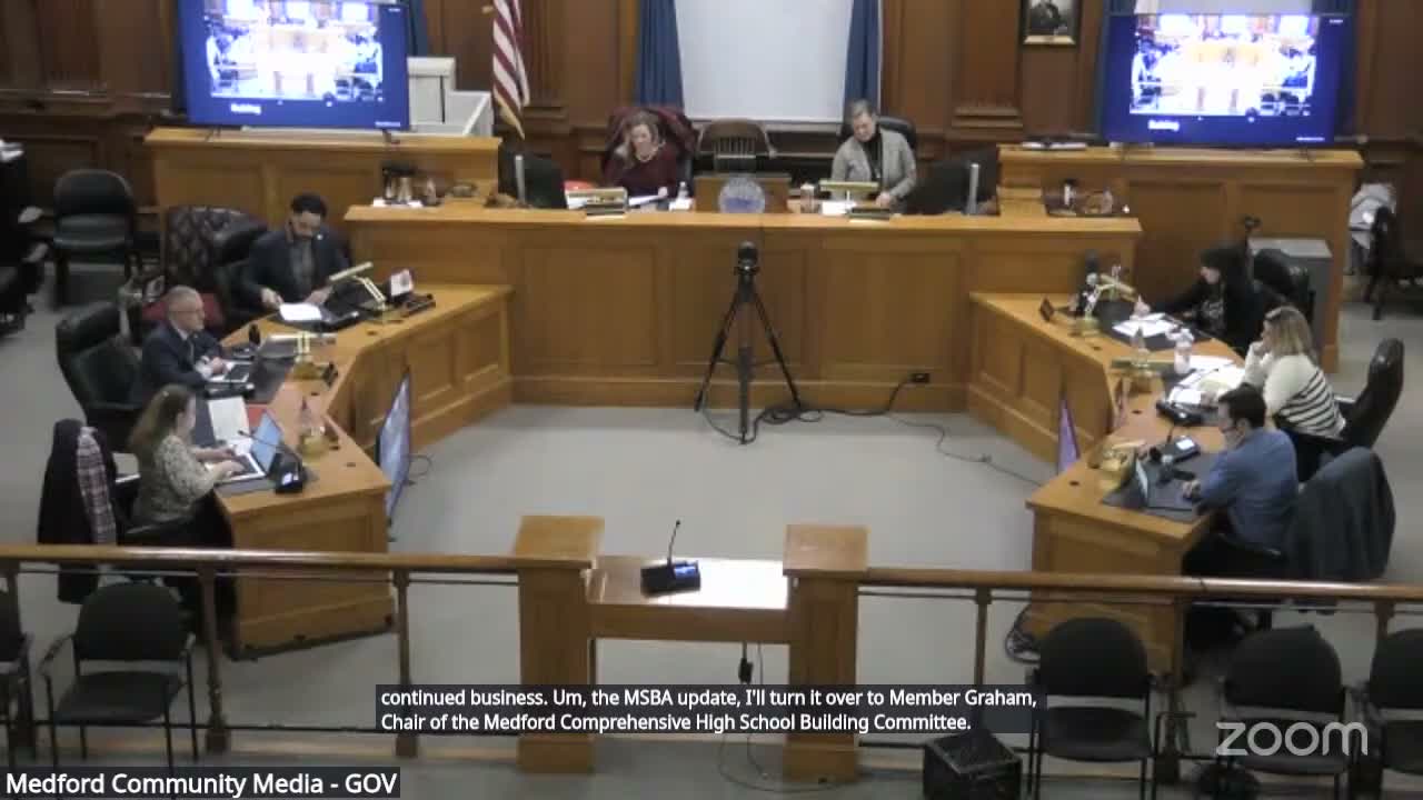 The School Committee heard a progress report March 2 on the Medford Comprehensive High School MSBA project and approved a revised capital-plan prioritization requested by the city's Collins Center.