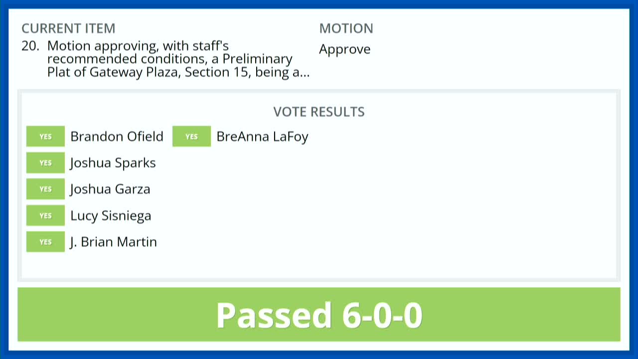 Next steps: The final plat will proceed in the city's process; the item may require city-council consideration related to frontage/paving standards and the existing interlocal agreement between the city and county.