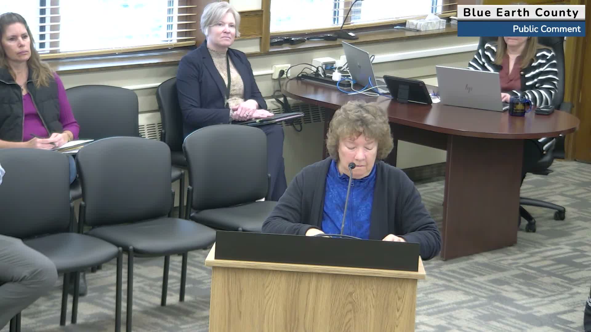 Two Mankato residents used the board's public‑comment period on March 3 to urge Blue Earth County commissioners to speak out against a proposed federal budget bill they said would cut SNAP and Medicaid funding and increase immigration enforcement.