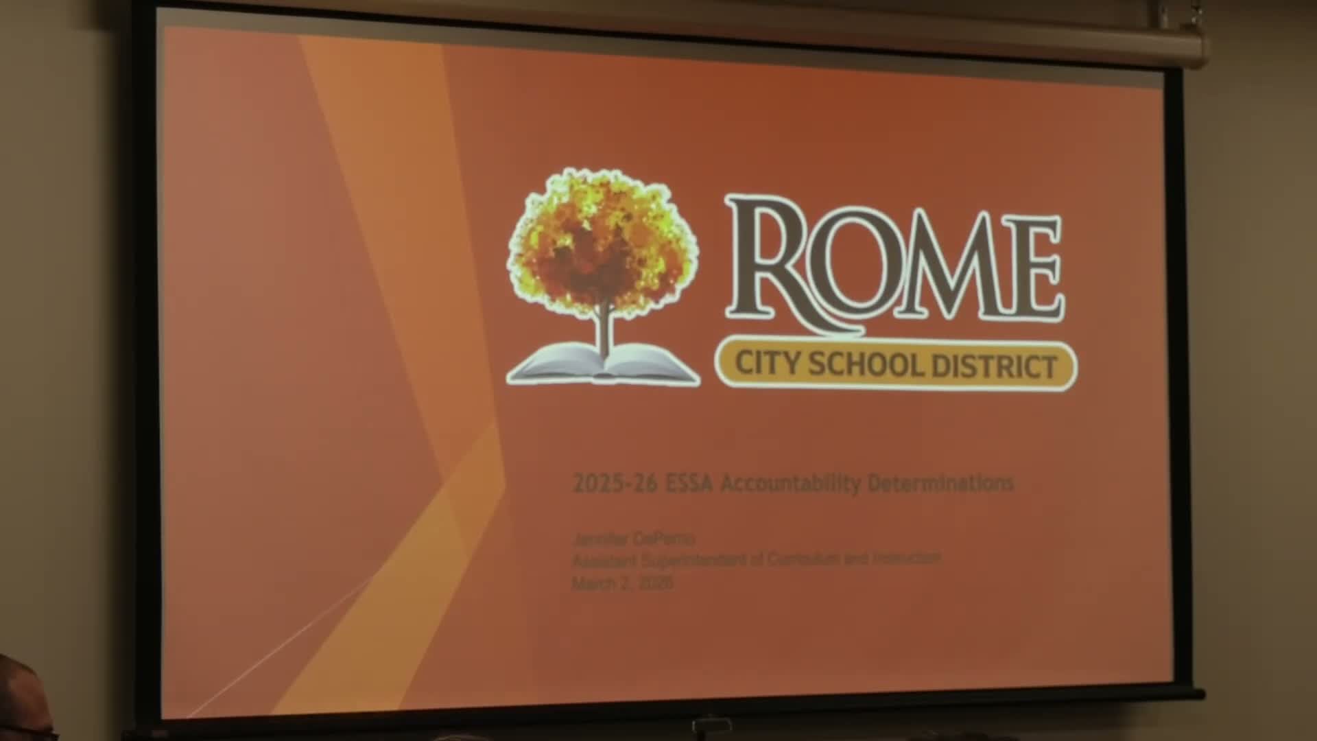 The district’s director of accountability briefed the Board of Education on new Every Student Succeeds Act (ESSA) determinations under New York State’s reimagined accountability model, saying the state treated this year as a reset ("year 1") and that the district must submit new district and school improvement plans by July 1, 2026.