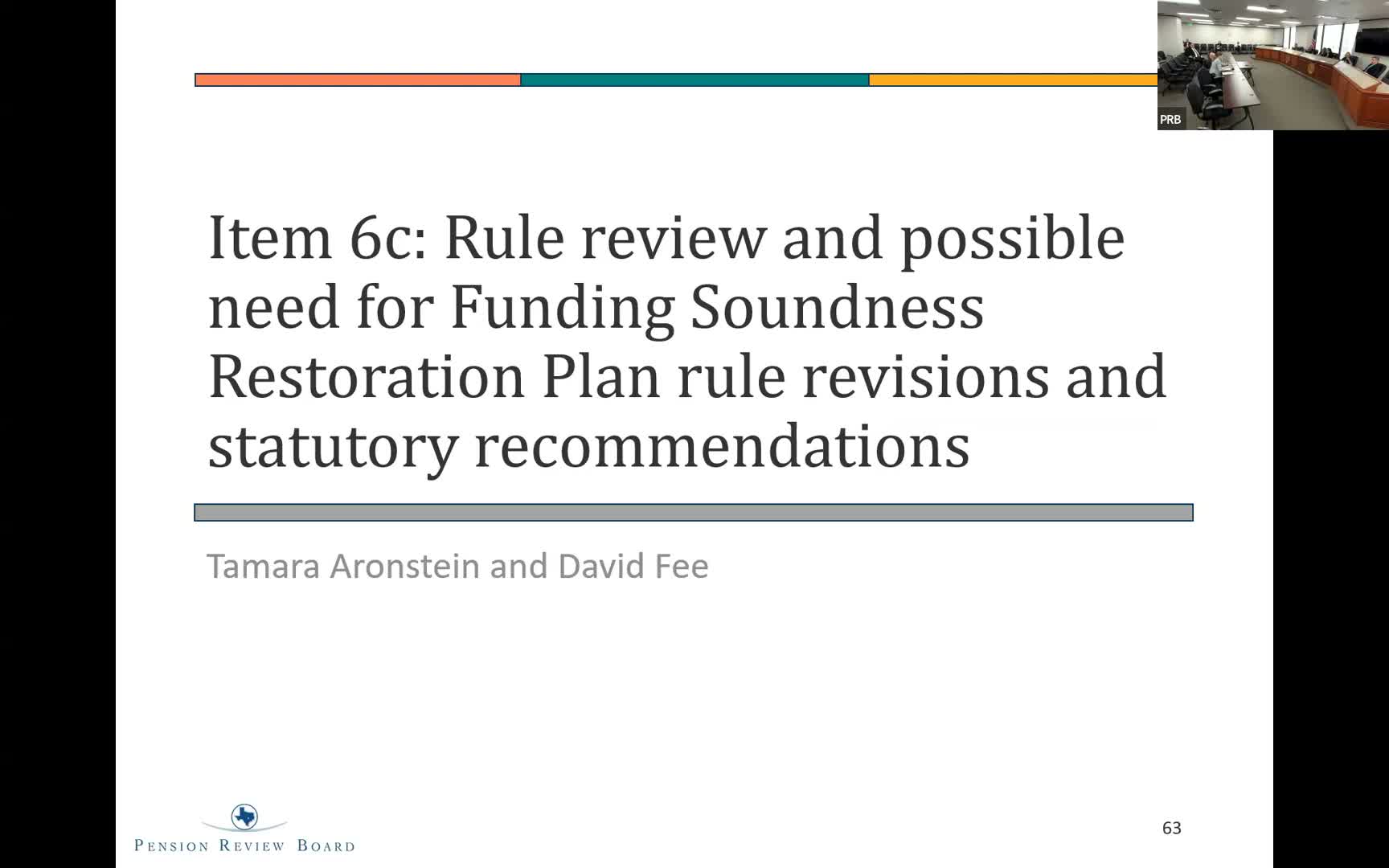 The Pension Review Board on Jan. 12 approved publication of a notice of intent to review the Financially Stressed Retirement Plan (FSRP) rules in the Texas Administrative Code, opening a formal public‑comment process and additional stakeholder outreach.