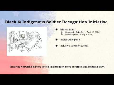 "We aim to bring awareness and inclusive recognition to the major aspects of Norwich history," Galette said, noting projects that range from a Liberty Pole on Norwich Town Green to student exhibits and community-made quilts. Carrie Wall, the committee's program coordinator, outlined physical projects including the Liberty Pole, two Liberty trees to be planted at Bean Hill and Howard T. Brown Park as part of a national tree program, and permanent interpretive markers at historic sites such as Norwich Town Cemetery.