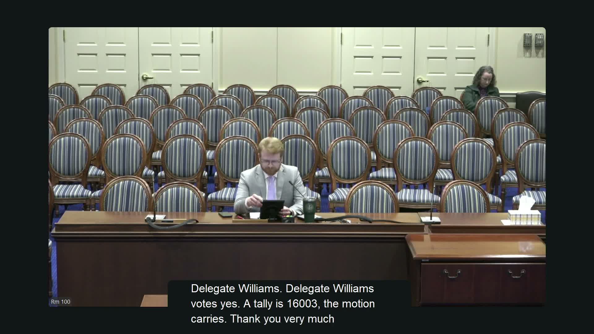 The committee moved to a roll call after discussion. The clerk read votes for each listed delegate and reported the tally as 11 yes, 5 no, 0 abstentions and 3 excused; the motion carried.
