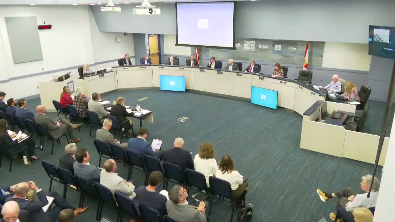The board voted to recess for two attorney‑client sessions to discuss pending litigation (Polk Regional Water Cooperative v. SWFWMD and Tampa Bay Water), and by acclamation elected Hannah Witts as chair and Pasco Commissioner Seth Waitman as vice chair effective at the end of the meeting.