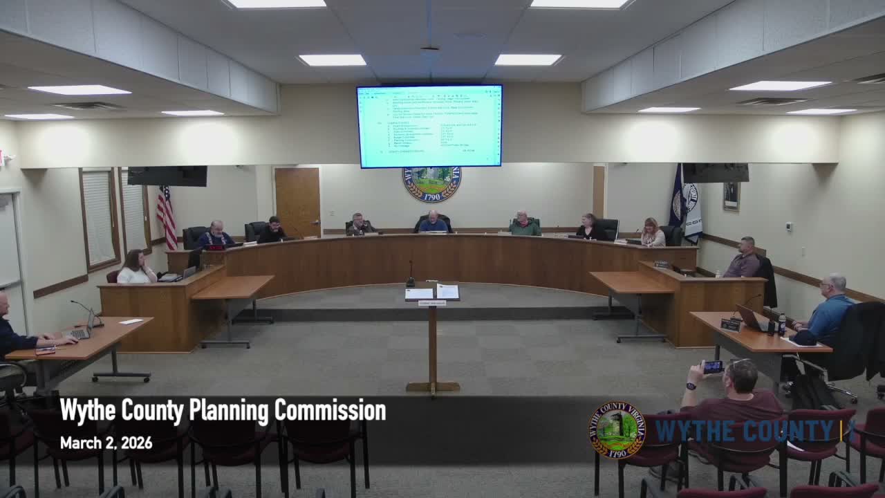 Wythe County staff updated the Planning Commission March 2 on a range of county services and upcoming events. Deputy County Administrator Mr. Hankins told commissioners that broadband contractor Citizens has completed fiber work on several roads and is progressing westward; he said crews will expand in March and that service is live in parts of town. “They've got fiber laid throughout not throughout town, but along the major routes through town,” Hankins said.