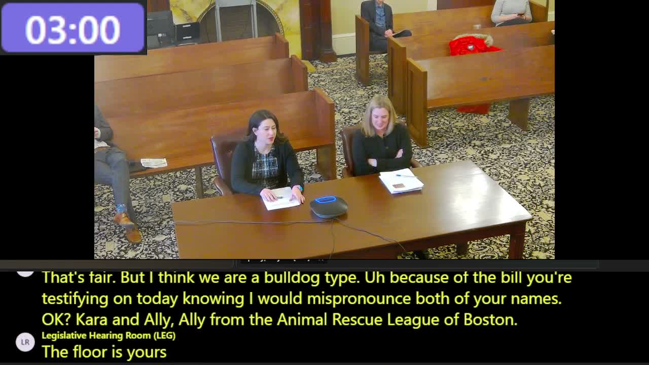 Ali Blank, director of advocacy for the Bridal Rescue League of Boston, told the committee the bill would allow a modest pet-owner contribution (for example via a sliding scale) to the Massachusetts Animal Fund and would direct certain fines under Chapter 129 into the fund, an action she said is estimated to bring in about $40,000 per year. She said the fund, created in 2012, currently has a four-year waitlist for services and lacks sufficient resources to meet demand.