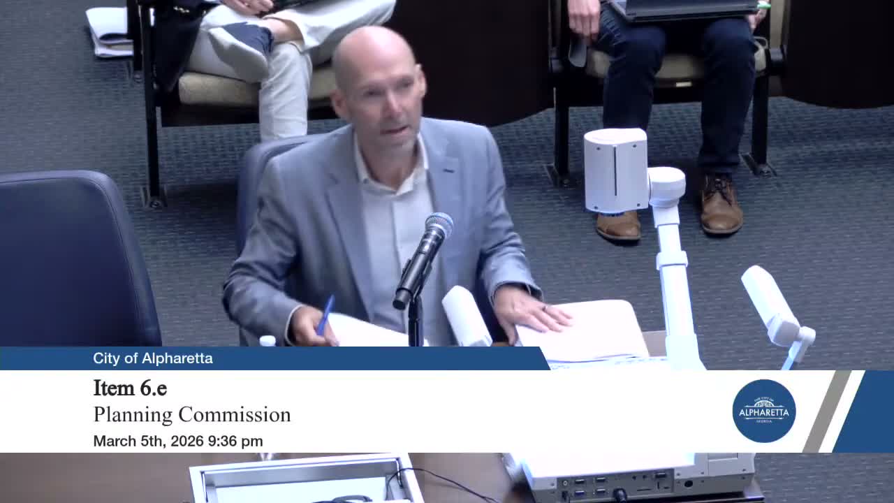 The commission recommended approval of a land‑use amendment, rezoning and variances to allow a mixed‑use redevelopment at 12725–12735 Morris Road that would add a 110‑unit condominium building, a three‑level parking deck, retained office uses and about 5,000 square feet of ground‑floor retail, alongside a 12‑foot multi‑use trail that ties into the Windward LCI trail network.