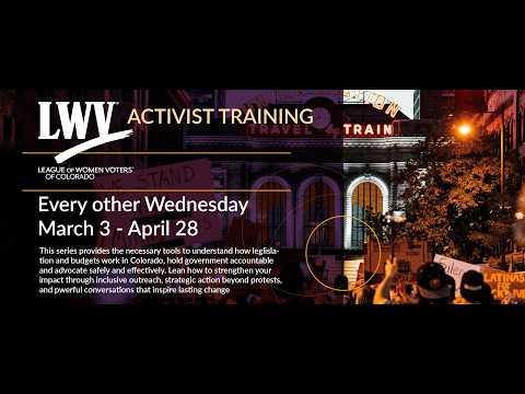 The League of Women Voters of Colorado hosted a virtual activist training explaining the state legislative process, committee hearings, fiscal notes and practical steps for citizens to track bills and testify. Presenters urged relationship-building with legislators, joining stakeholder coalitions and joining LWVCO's Legislative Action Committee.