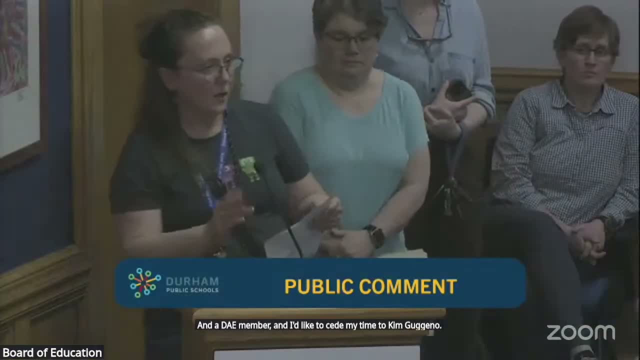 Kim Gugino, DPS high school media lead, described library media centers as "active, vibrant parts of the school day" and asked the board to "continue to prioritize our library media centers by hiring and retaining licensed media coordinators and by providing adequate funding for books, programming, and resources that support literacy instruction in every school." She cited examples across the district: Jordan High School's circulation had increased "74% compared to this time last year," Northern reported a 33% increase and Durham School of the Arts hosted events serving more than 1,000 students.