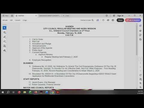 The council approved Resolution R2026-01 supporting a USDOT BUILD grant application for vehicular and pedestrian improvements in downtown Dawsonville; Amanda Edmonson said the project would include a $1,000,000 match from SPLOST 8.