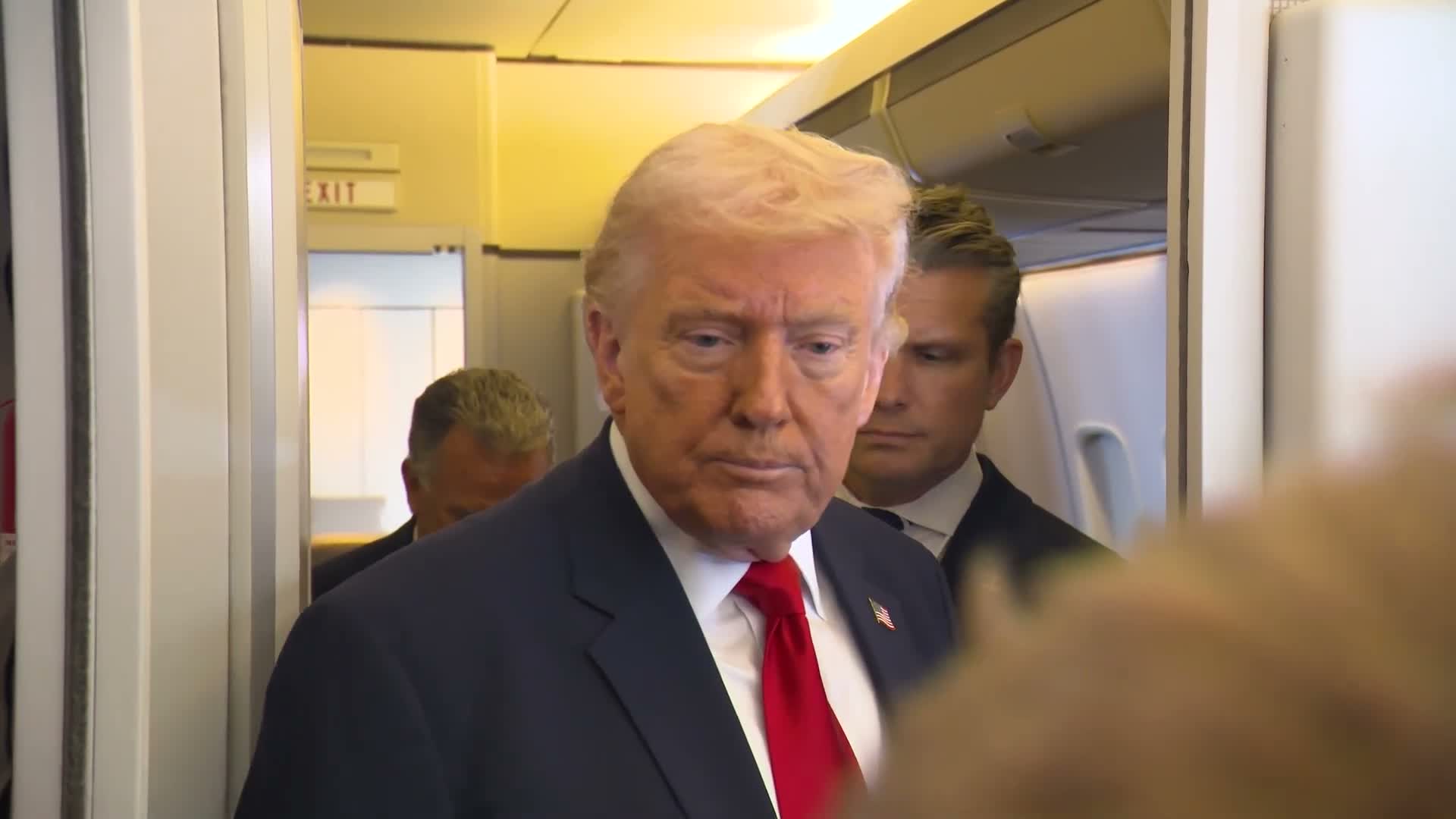 When pressed about reports that an elementary school in southern Iran was hit, President Trump said 'based on what I've seen, that was done by Iran' and said the situation was under investigation; reporters also raised concerns about strikes on nonmilitary infrastructure.