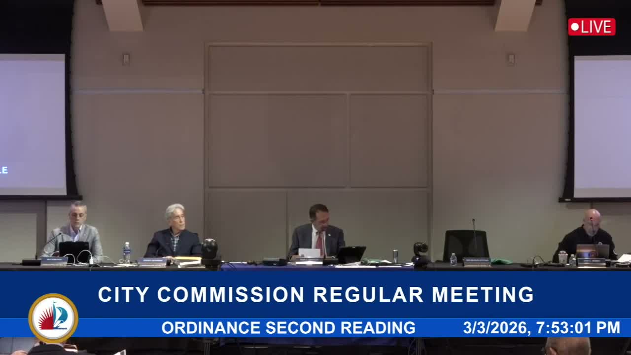 The ordinance passed on a roll call with Commissioners Sorensen, Vice Mayor Herbst, Commissioner Glassman and Mayor Dean Trantellis voting yes; the commission instructed staff to study implementation steps and to pursue state‑level consistency efforts.