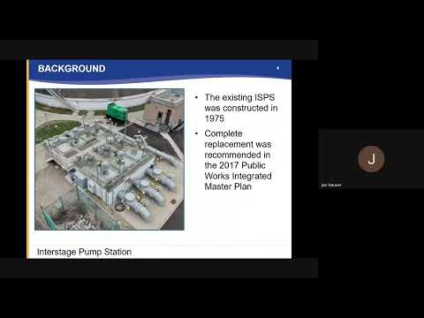 The presenter pointed to an aerial map showing where the existing and proposed interstage pump stations would be located. The presentation concluded with the wastewater division manager offering to take questions from the council.