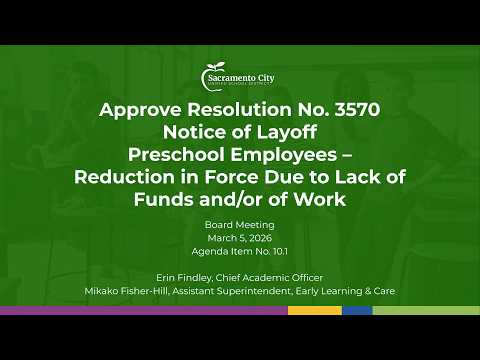 The Sacramento City Unified School District board voted to approve a resolution to reduce preschool staffing and program capacity, including the proposed closure of the Matsuyama and Martin Luther King Jr. (MLK) preschool programs and converting the Leonardo da Vinci (LDV) Children’s Center from a 12‑month to a 10‑month schedule.
