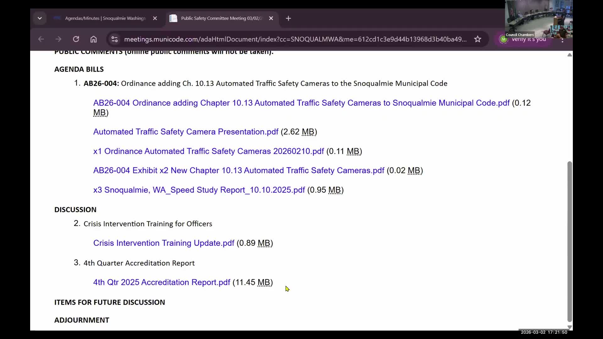 Snoqualmie's police leaders told the Public Safety Committee they aim to have all officers complete a 40-hour crisis-intervention training course by the end of the year, using King County-funded classes to reduce local costs; the department reported crisis-related calls were a small share of total call volume.