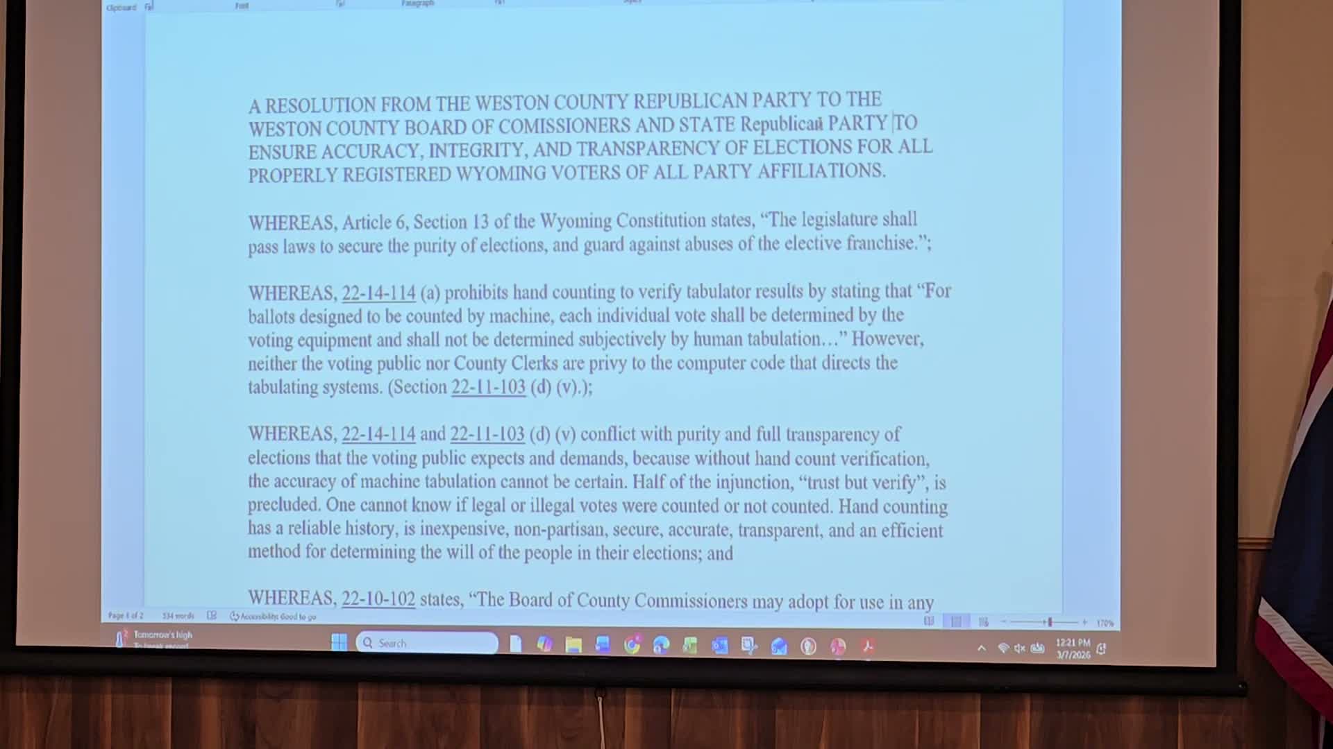 Weston County delegates pass a slate of resolutions on autopens, a controversial designation and AI data‑center water protocols