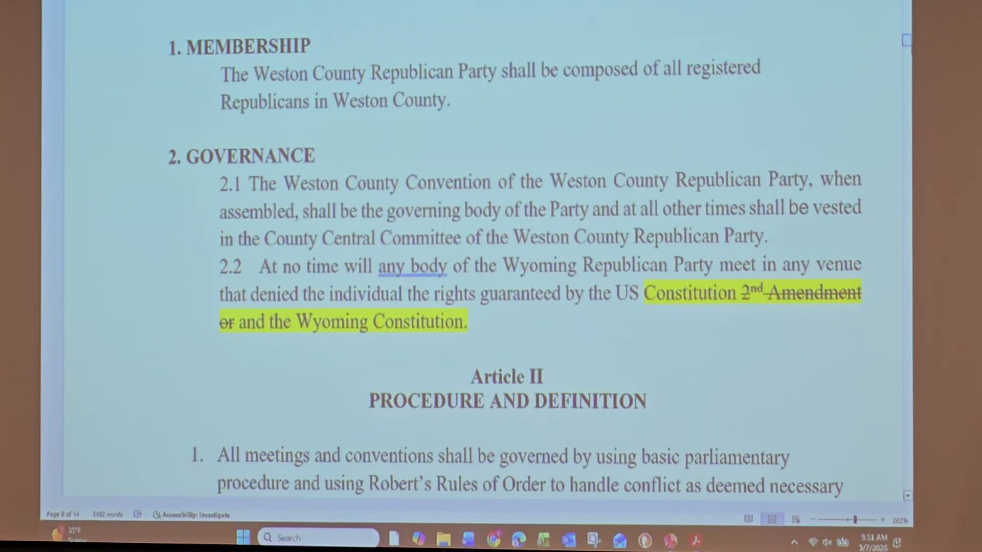 Weston County GOP advances bylaws language asserting party autonomy, votes to send measures to state