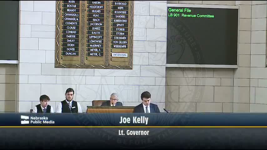 The Nebraska Legislature advanced LB901, a revenue-package shell that combines four bills to raise an estimated $26 million by rolling back a limited data-center exemption, expanding Department of Revenue fee and collection authority, increasing taxes and regulation for 'games of skill' devices, and creating $3 million in refundable, transferable tax credits for domestic-violence service providers.