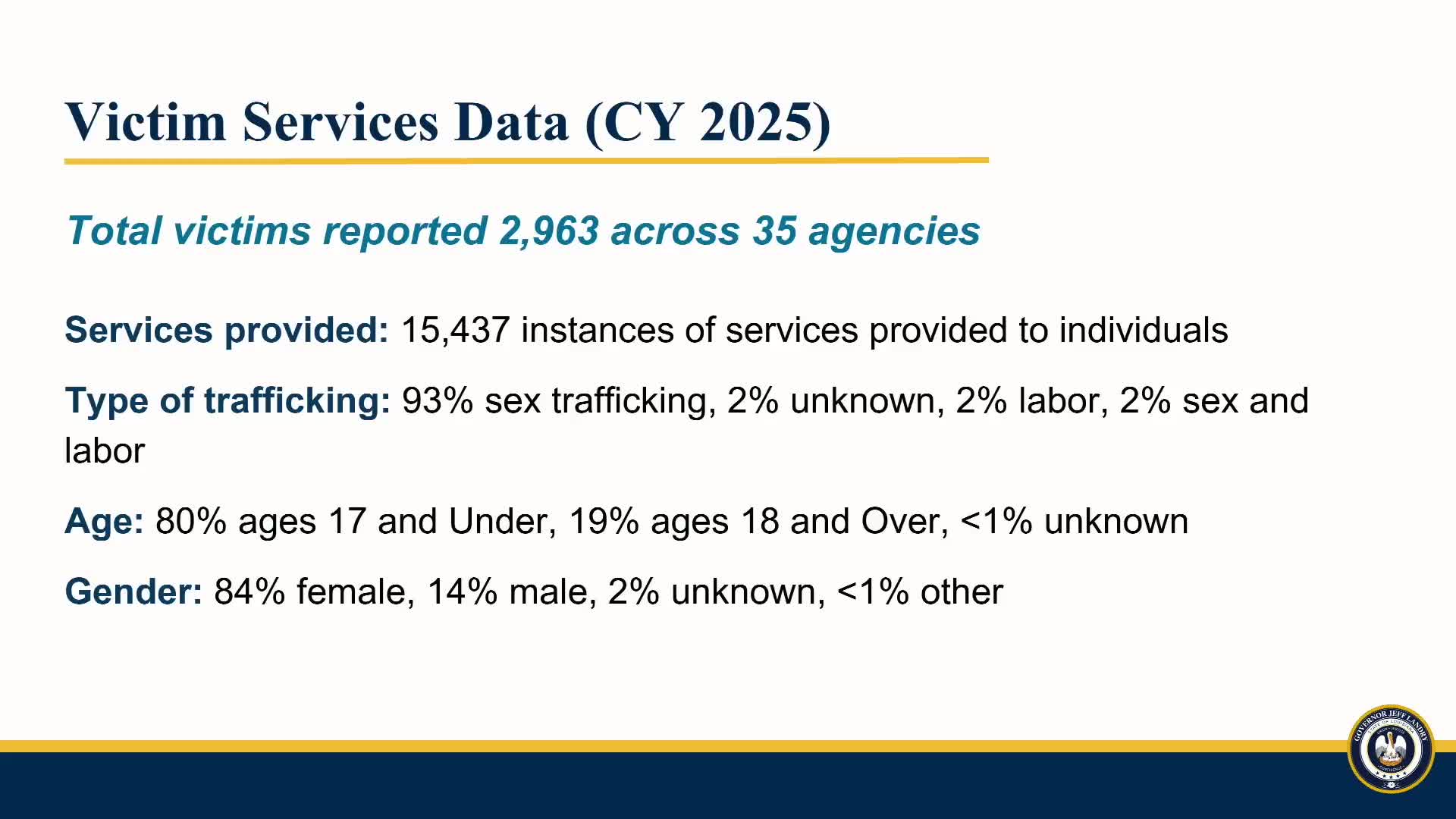 “Those numbers reflect that we are doing a really good job at identifying child and youth trafficking victims and putting wraparound services,” Andropon said, while acknowledging the data are provider‑reported and may include duplicates.