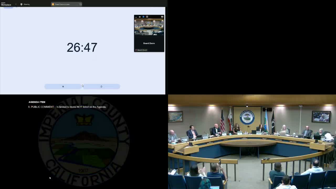 Multiple residents told the Imperial County Board of Supervisors they oppose a proposed hyperscale AI data center near residential neighborhoods and asked the board to support a temporary moratorium, mandatory discretionary environmental review, setback buffers and independent verification of developer claims.
