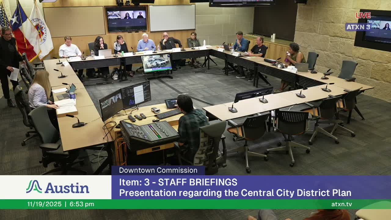 Virginia Potter, Central Health development director, and JP Eitenar, vice president of strategy, briefed the commission on Central Health's role as Travis County's hospital district and on recent and planned investments focused on downtown residents and people experiencing homelessness.