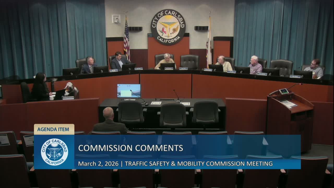 Commissioners used the growth-management discussion to press staff on practical safety and operational issues: temporary construction signage that blocks bike lanes, roadside hazards on Carlsbad Boulevard, and limited parking in Village areas.