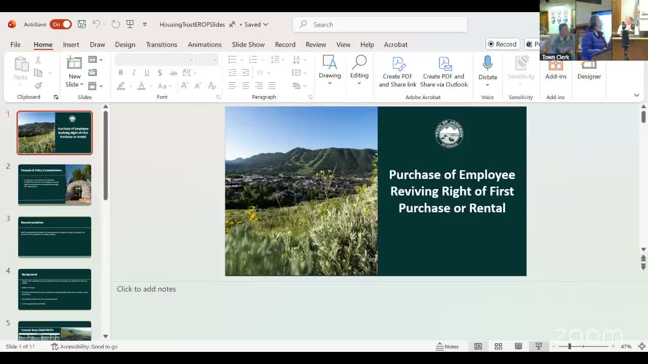 The Jackson Town Council on March 2 instructed staff to prepare purchase documents for an employee right‑of‑first‑purchase (EROP) through the housing trust, a move staff recommended to expand opportunities for town employees to buy deed‑restricted homes.